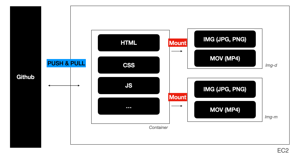 The way to save it in the server is to send media files directly to the server through ftp and so on, and the codes directly load the files in the server. However, all the codes were containerized and a separate method was needed to access the files directly within the EC2 server. As a result of googling to solve this problem, we found that using Docker’s Volume can be easily solved.