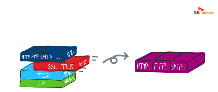 SSL creates an independent protocol layer called the ‘security layer’ and falls between the application layer (HTTP, FTP…) and the transport layer (TCP, etc.) as shown. In other words, HTTPS is a protocol for secure HTTP communication by placing an HTTP protocol on top of SSL. It’s like being shipped to a paper delivery box and then turned into a locked iron box.